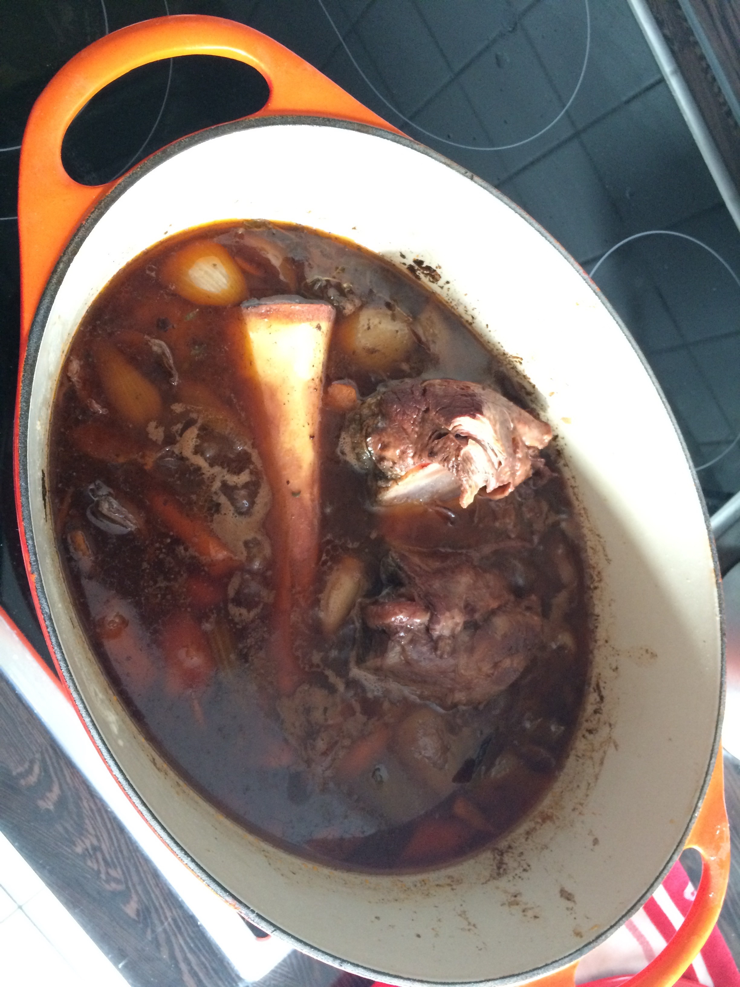 1.) Schmorgerichte gewinnen durch Zeit. Wenn sie einen Tag vorher zubereitet werden, optimiert sich Struktur und Komplexität der Sosse wie ein Rotwein, der im Holzfass ausgebaut wird. Fangt also einen Tag vorher an.