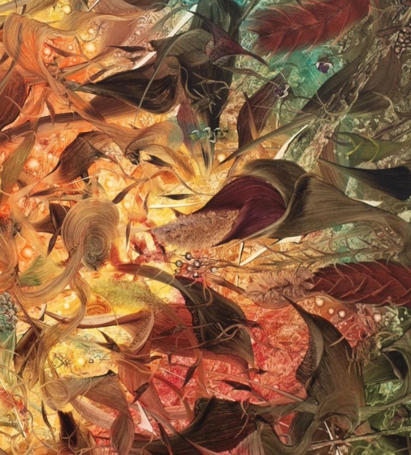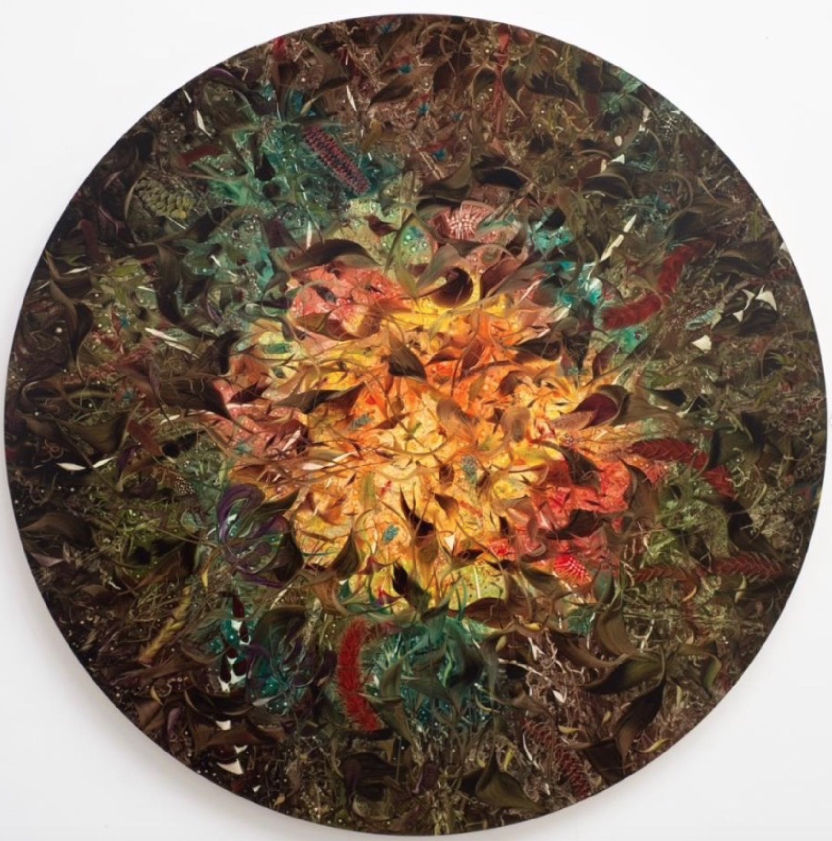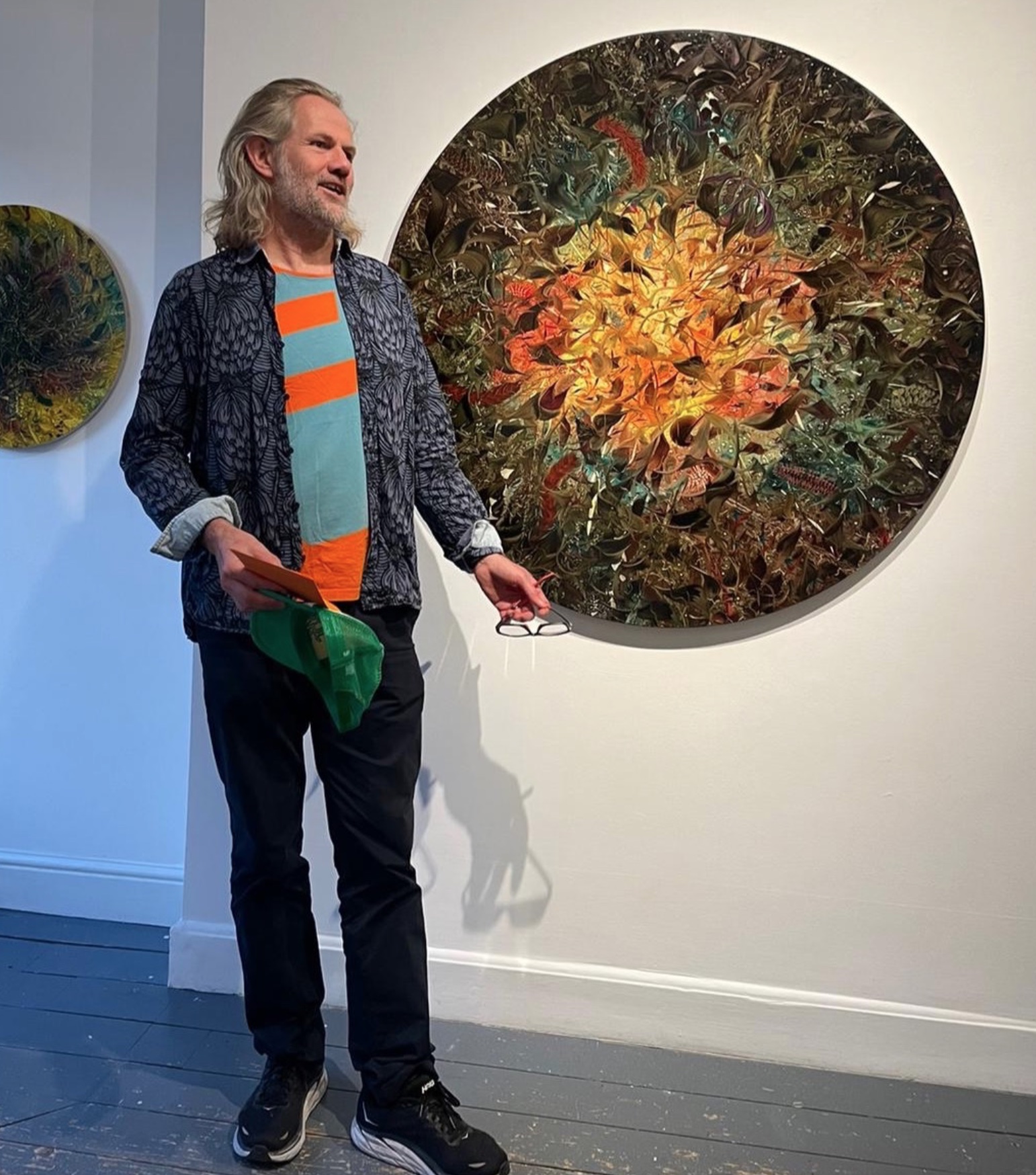 The piece is part of the fourth solo exhibition at Patrick Heide Contemporary Gallery in London, Andy Harper (1971, UK), the show is called “Any Way Up” (25.09.2025-8.11.2025. In the show the artist presents a series of new circular paintings that emphasise the cyclical, rhythmic, and ever-shifting qualities that have long been central to his practice. Harper’s enduring interest in creating imagined worlds of unruly, elaborate vegetation-like formations is encapsulated or rather released within the circular frame. This is the Collectors choice, the second piece in the Collection by Andy Harper (and let’s forget about the path of the #Adobe “lost” on the Korean Peninsula).